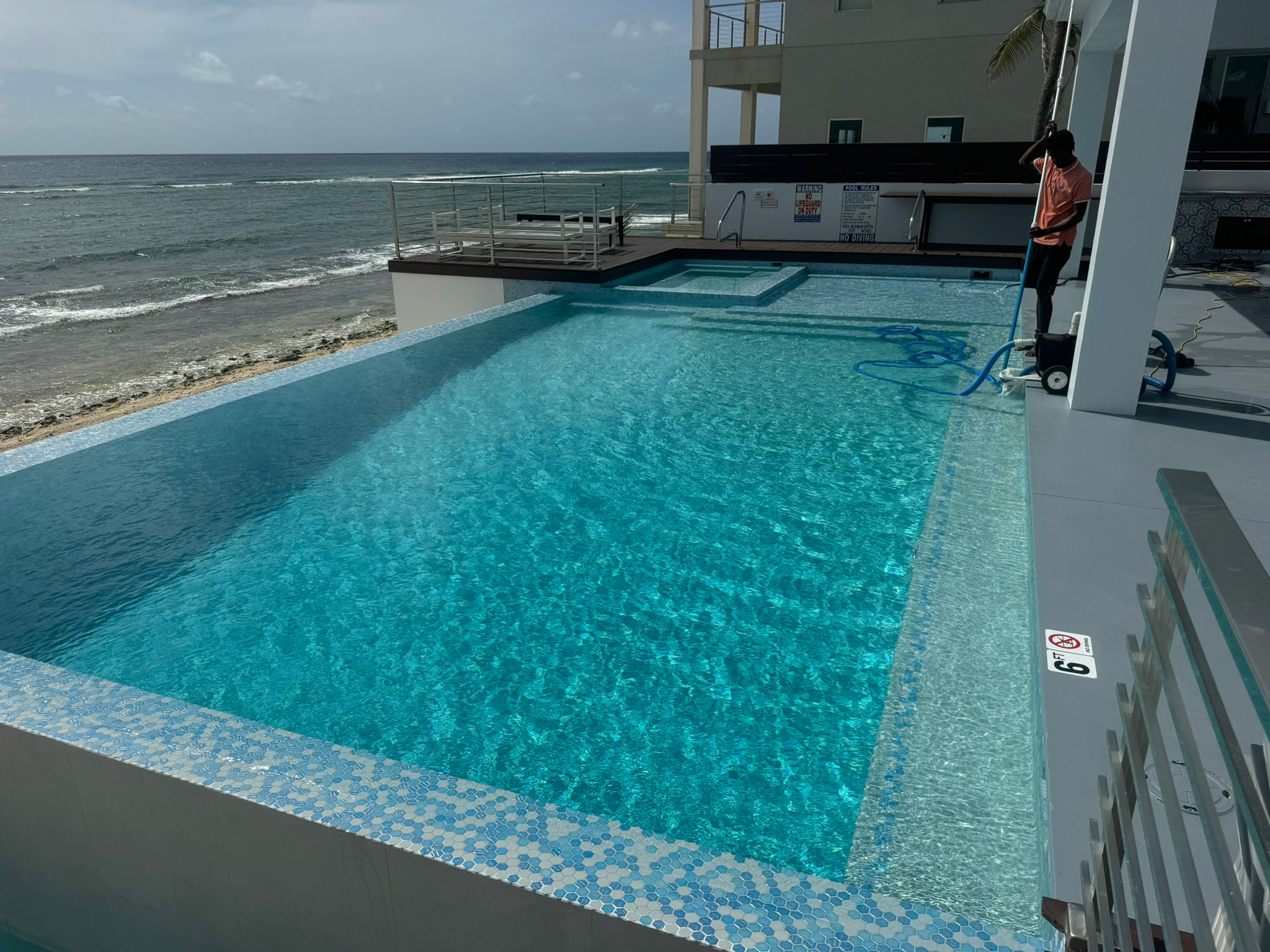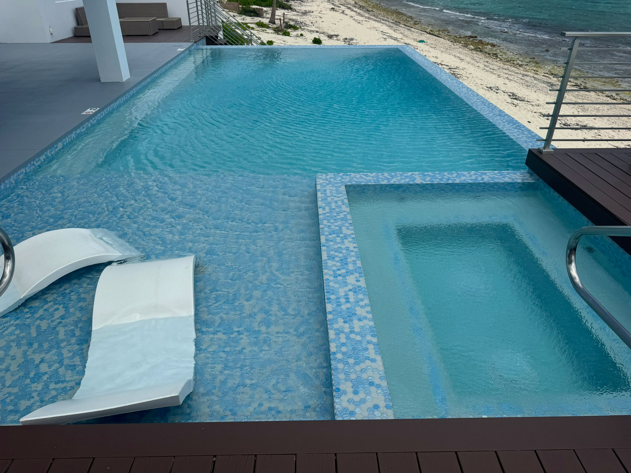 Even the most beautiful pools eventually show the signs of time — especially in beloved locations like this vibrant Cayman Kai retreat. Originally a picturesque centerpiece, the pool and surrounding outdoor space had become weathered after years of nearly daily enjoyment. Splash Pools stepped in to restore not just the function but the magic of this property, starting with a complete strip-down of worn tiles both inside the pool and throughout the patio area.