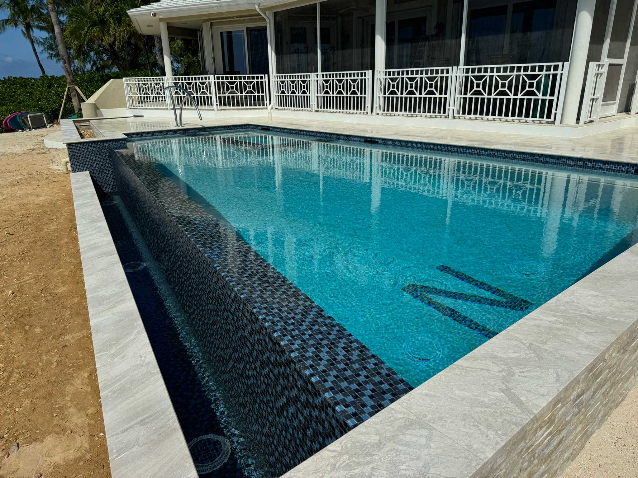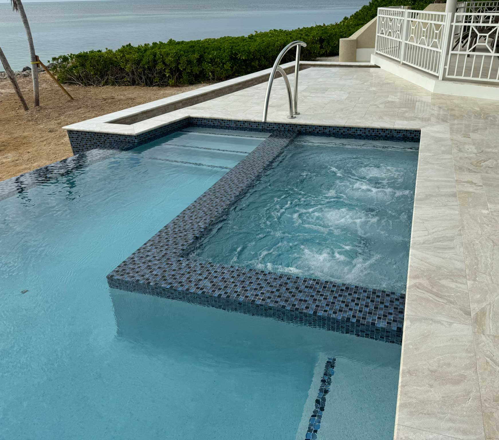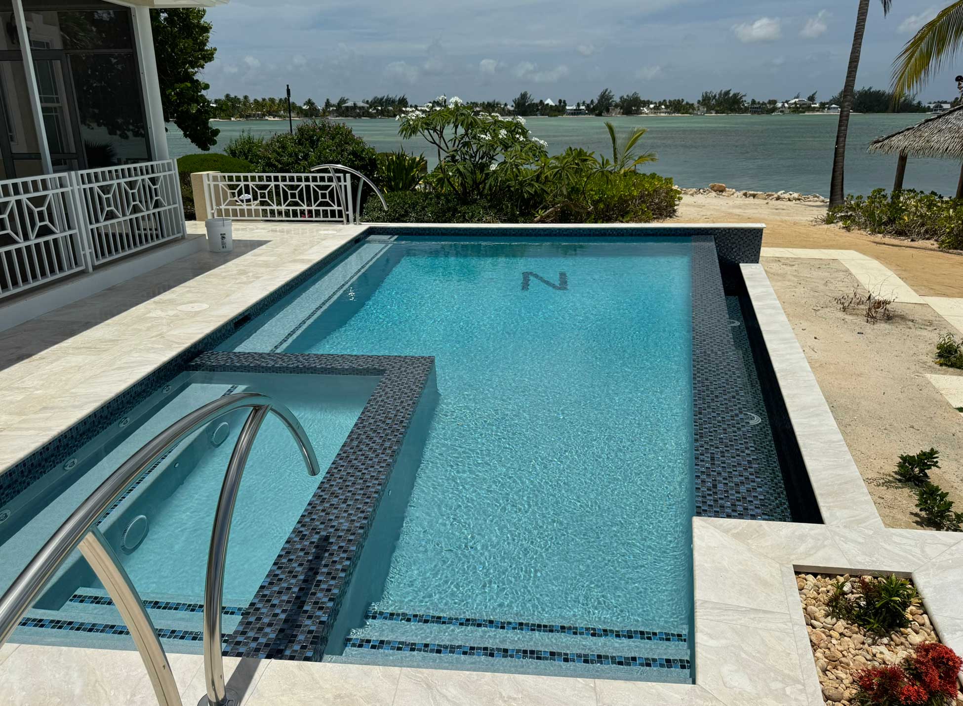 Infinity Edge, Jacuzzi, Sunset Viewing Bench, Deep Blue Mosaic Tiles