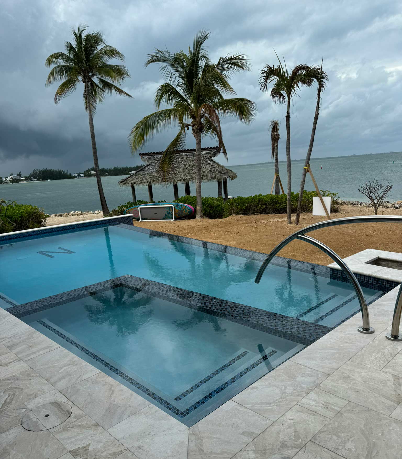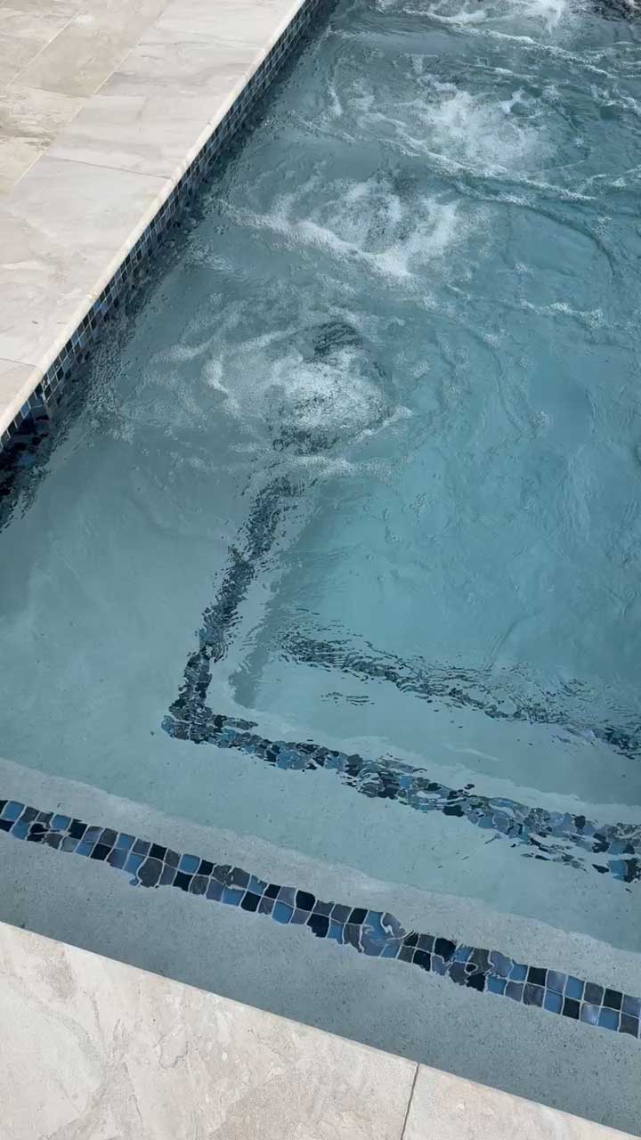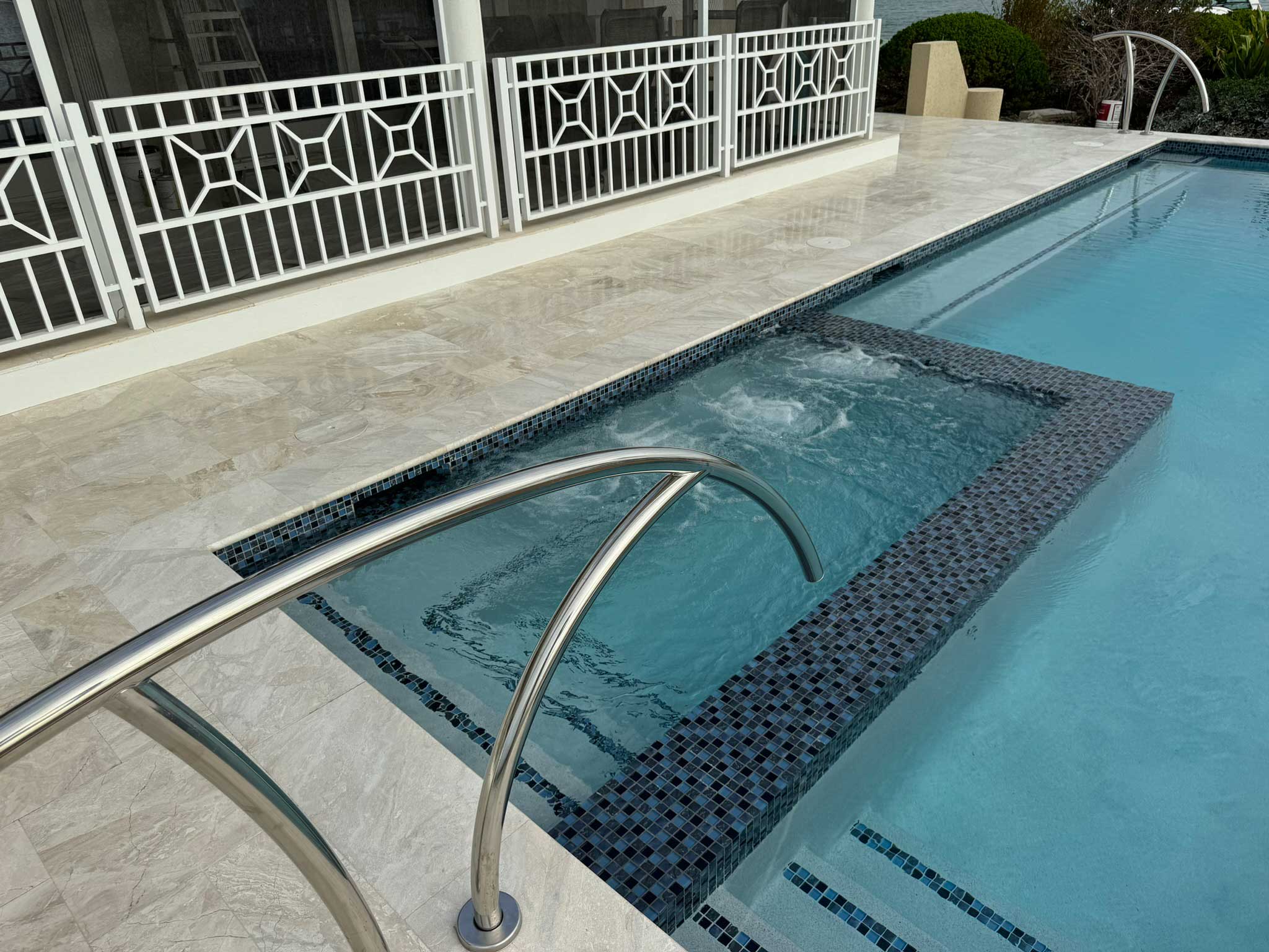 Infinity Edge, Jacuzzi, Sunset Viewing Bench, Deep Blue Mosaic Tiles
