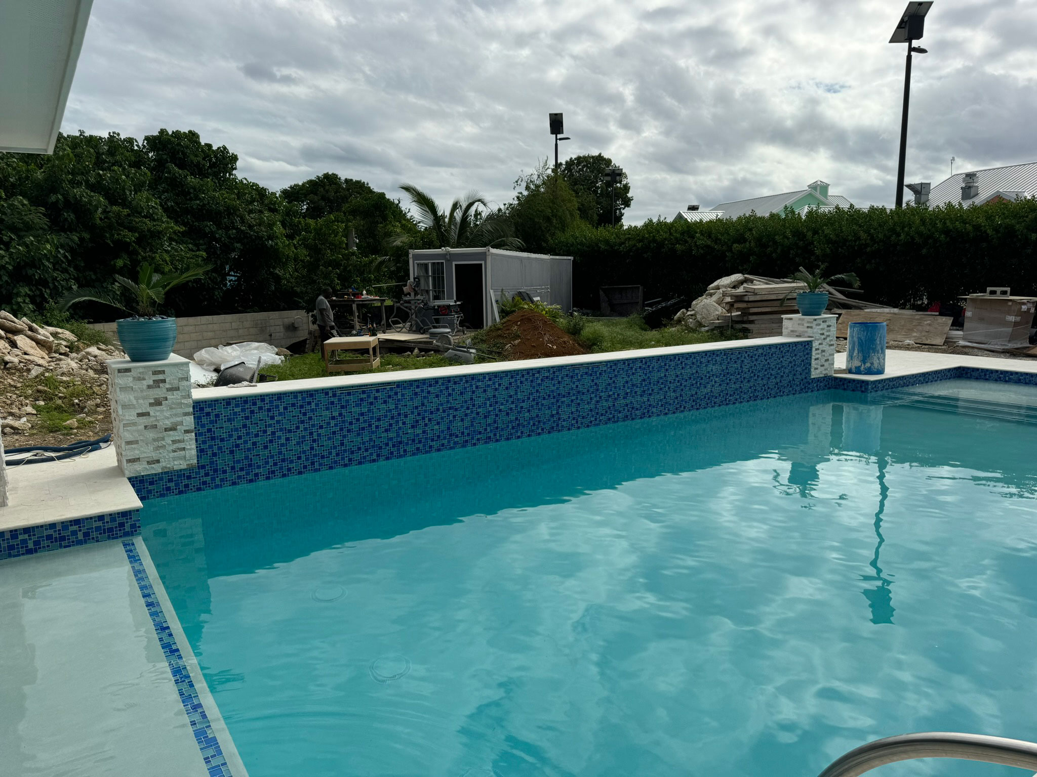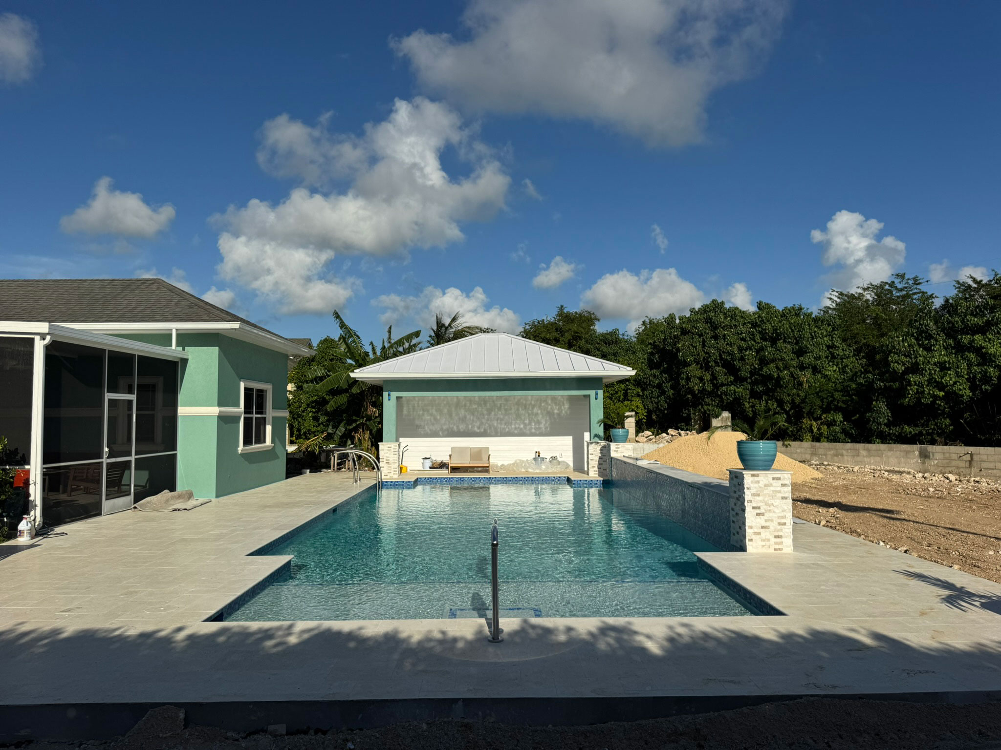 Beyond the water, the space includes a cabana-style bathroom, blending convenience with luxury — perfect for entertaining or long afternoons outdoors. With crisp tile work, minimalist landscaping, and a layout designed for both relaxation and entertainment, The Azure Escape is more than just a pool — it’s a complete lifestyle upgrade.