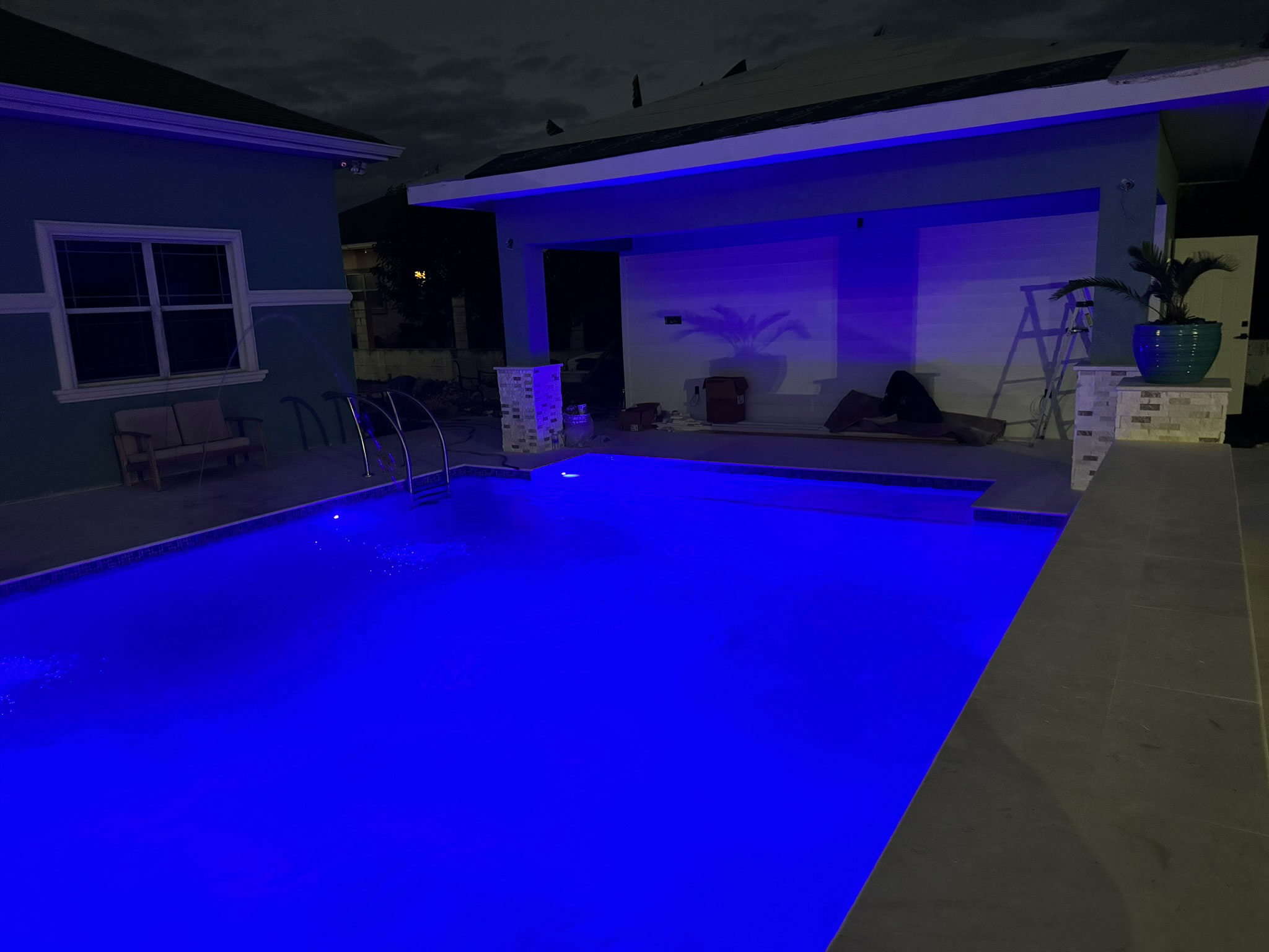 Designed to elevate everyday living, The Azure Escape brings modern sophistication to a quiet residential setting. From the start, the goal was to create a space that felt both refreshing and refined — a backyard retreat where sound, light, and water could transform the atmosphere at any hour.