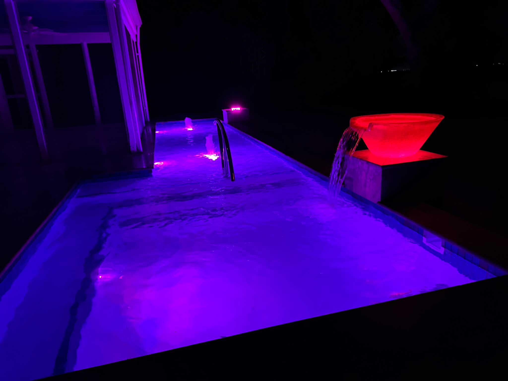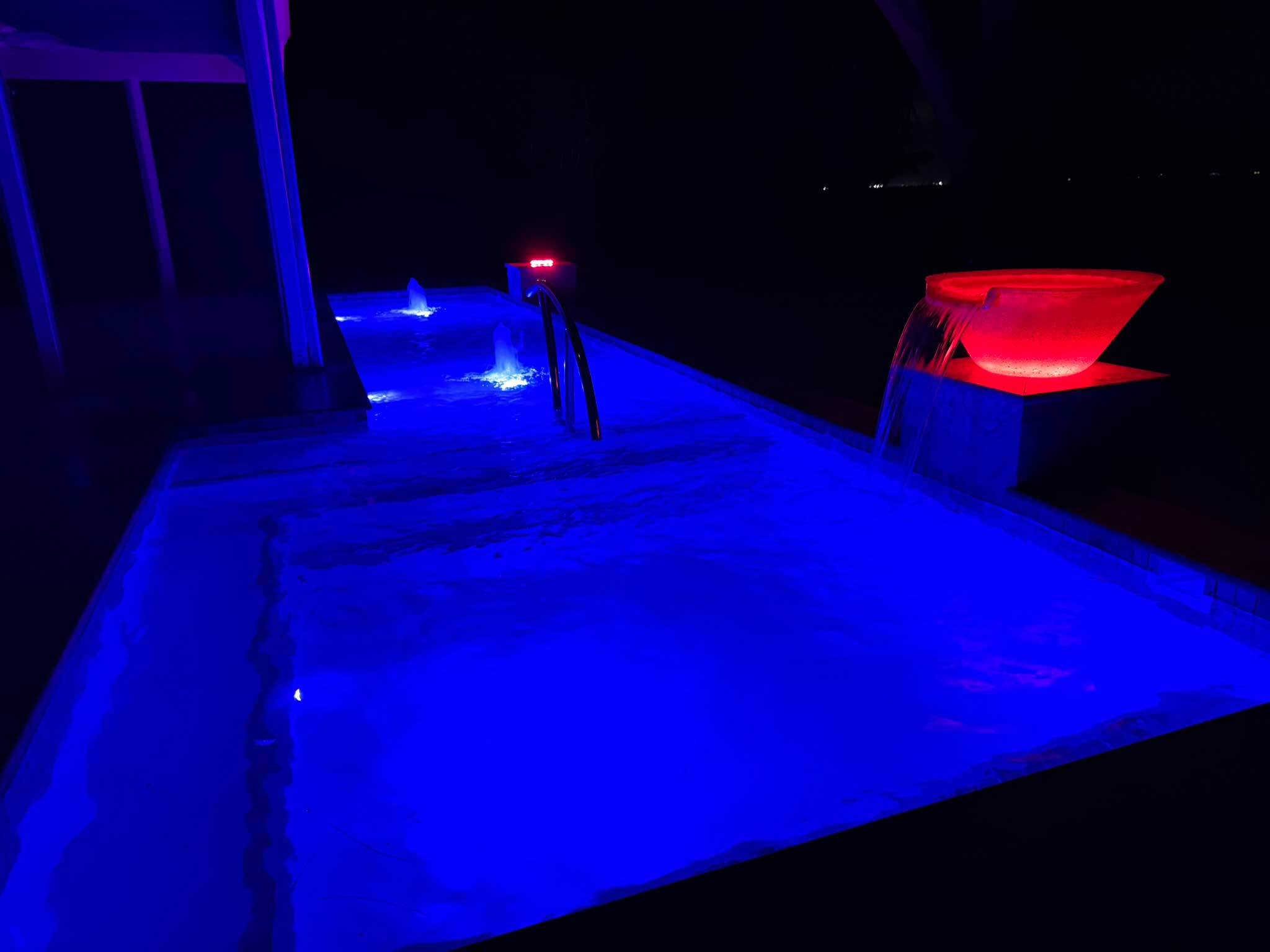 L-Shaped Pool, Jacuzzi, Color-Changing LED Lighting, Decorative Water Bowls
